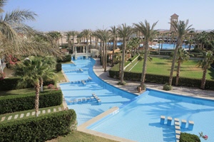بالإضافة إلى عبقريته في توزيع الوحدات داخل المنتجع، التي جعلتها، وكأنها تُطوق البحيرات وحمامات السباحة.