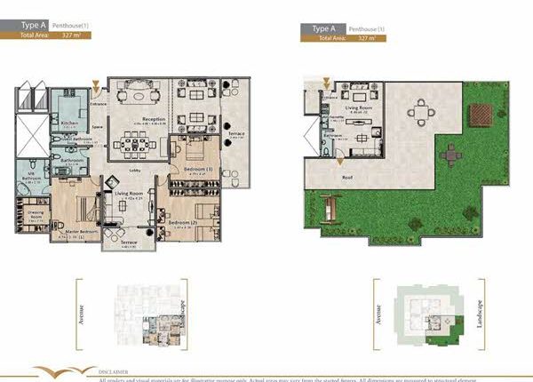 - لاسيما تبدا مساحات شقق البنتهاوس من 280 م2.