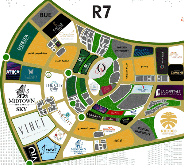 - تبلغ مساحة R3 حوالي 1000 فدان ليضم 24.130 وحدة سكنية.