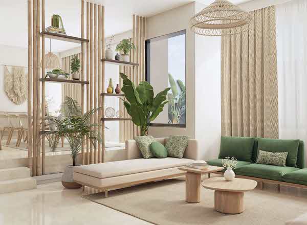 - كما توجد مساحات التوين هاوس بالاطلالات المزدوجة للبحر، واللاجون تبدأ من 175 م2.