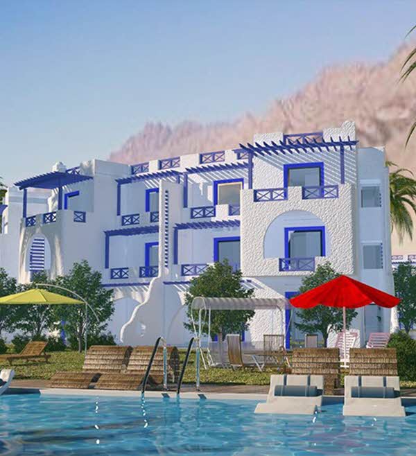 كما تنوعت أنماط الوحدات المصيفية بين الشاليهات والدوبلكس، وتم تشييدها على الطراز اليوناني الرائع، وتتناغم ألوانها مع ألوان الطبيعة المحيطة بها.